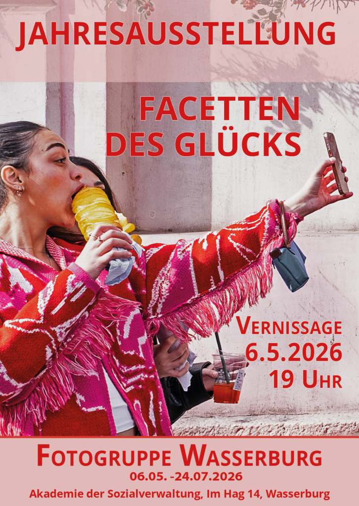 Für das Foto-Jahr 2025/2026 haben wir das Thema FACETTEN DES GLÜCKS gewählt. Den Termin für die nächste Jahresausstellung können Sie sich schon mal vormerken es ist der 6. Mai 2026. Sie sind herzlich eingeladen.